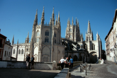 in Burgos - km2615 Übernachtung in Hostal - 4.6. morgens letzter gemeinsamer Spaziergang mit Blick auf die Kathedrale - Abschied von der Gruppe |